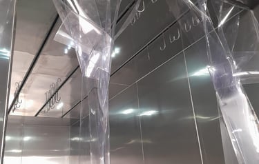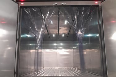 ■ Cortinas de flujo para evitar fuga de temperatura en carga y descarga. Canales y tubos para desfogue de agua para mejor limpieza.