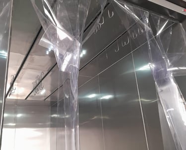Cortinas de flujo, sumideros, sistema de luces LED.