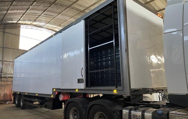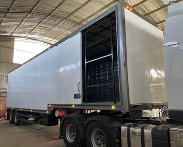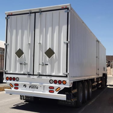 ■ Furgones con paredes fijas o abatibles laterales en 02 o 04 hojas. Además ofrecemos modelos con puertas corredizas en diferentes rieles a lo largo de todo el semirremolque ideal para carga con palets de madera.
